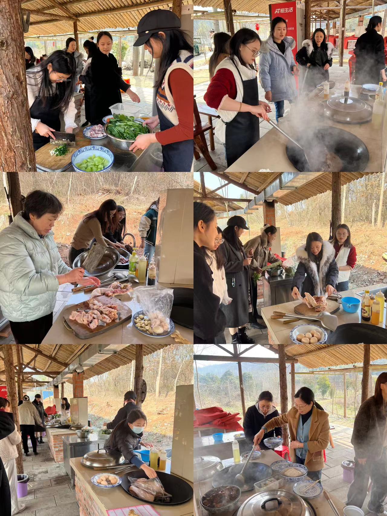 3月8日上午阳光明媚,女神们乘坐大巴,满怀期待地抵达了紫蓬山星野蓬境生态乐园。庄园内绿树成荫,花香四溢,为大家提供了一个远离城市喧嚣的宁静空间。到达之后正值中午,全体女神们纷纷拿出看家本领,积极参与大锅灶烹饪之中。一到现场,大家立刻投入到紧张的烹饪中。她们挥动着手中的铲子和刀具,动作熟练而优雅,有的挥铲翻炒,有的精心调配,现场异常火热。不一会儿,一道道色香味俱佳的佳肴便呈现在了大家面前,大家的菜品的荤素搭配、色香味俱全,十分丰盛美味,随后大家与公司副总经理许总一同享受了这顿丰盛的美食成果,因公务出差的总经理陈总也在千里之外为女神们送上节日的祝福。这不仅展现了女神们的厨艺才华和创新精神,也促进了大家之间的交流与互动,大家在做菜中互相学习、互相借鉴,拉近了彼此的距离。