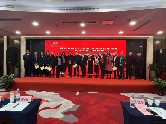 会议第二项:对蓝狮在线第一批内部讲师10人,由公司总经理进行现场颁发聘书,并对企业《提升PPT技能 绘好企业宣传篇 说好企业品牌故事》活动中12位获奖者进行现场颁奖。