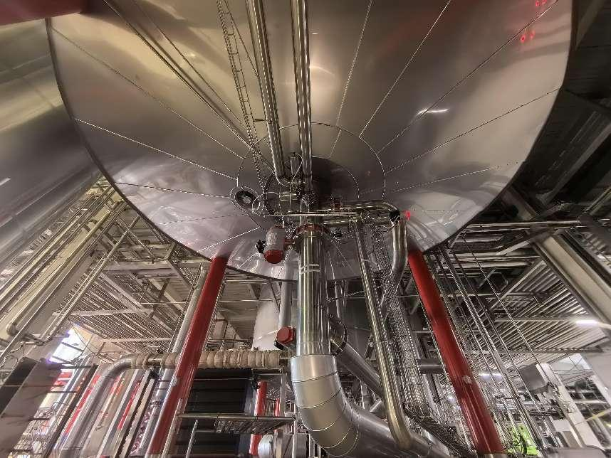 蓝狮在线作为雪花的老朋友,此次主要负责新厂区的工艺管架管线安装,泵、板换、阀门等安装,安全设施装置安装,压力试验(含吹扫、试压)、压力容器及压力管道报检、调试、培训及售后服务等。值得一提的是,此次常规的CIP罐供回管,并没有采用软连接,而是制作膨胀湾,这样更具稳定性与便捷性。