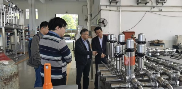 陈总首先带领刘校长一行人参观了公司装备制造中心,并就装备制造中心的的职能定位、未来发展、以及现场制造的流体项目单元模块、部分非标装备、集中控制系统等进行了介绍。