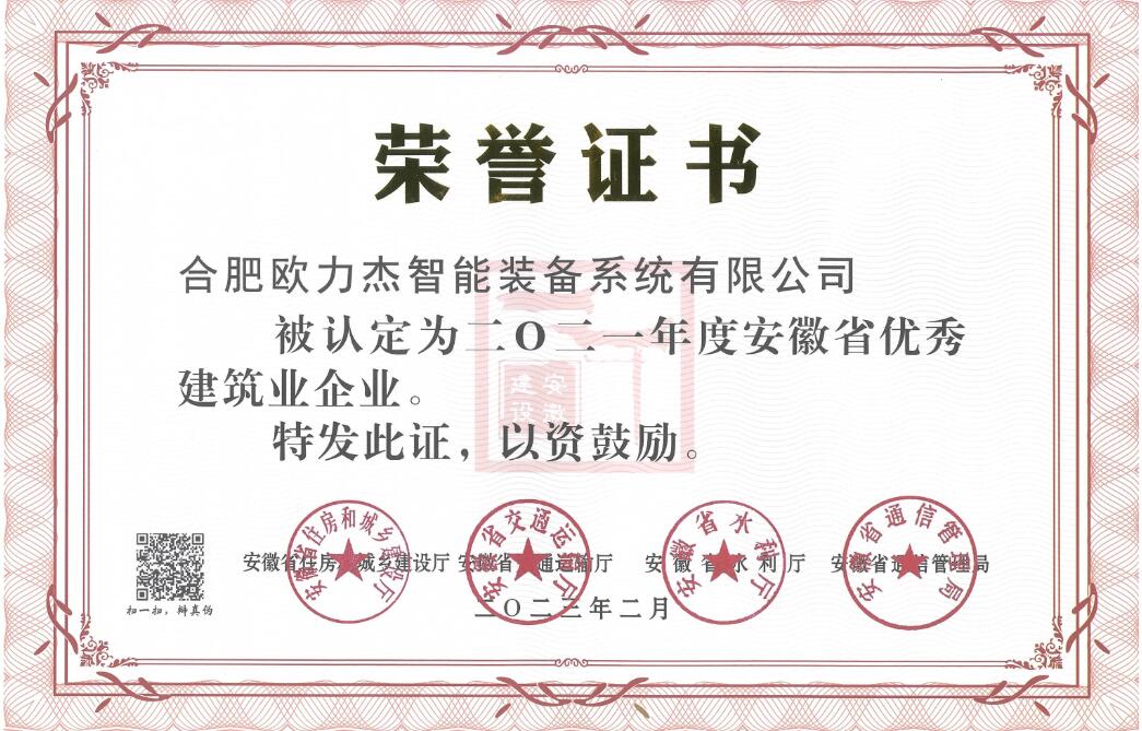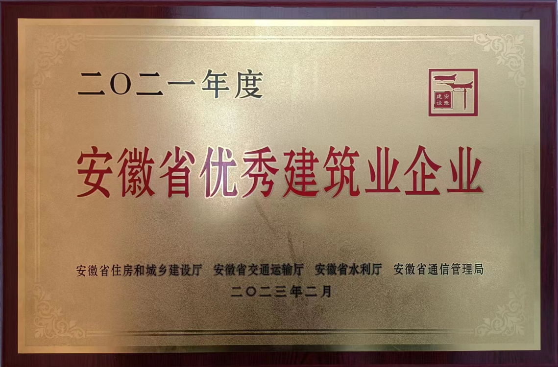 热烈祝贺蓝狮在线-科技赋能场景,让娱乐更有趣! 荣获2021年度安徽省优秀建筑业企业。该荣誉由安徽省住房和建设厅、安徽省交通运输厅、安徽省水利厅、安徽省通讯管理局四部门于2023年2月统一评选认定。